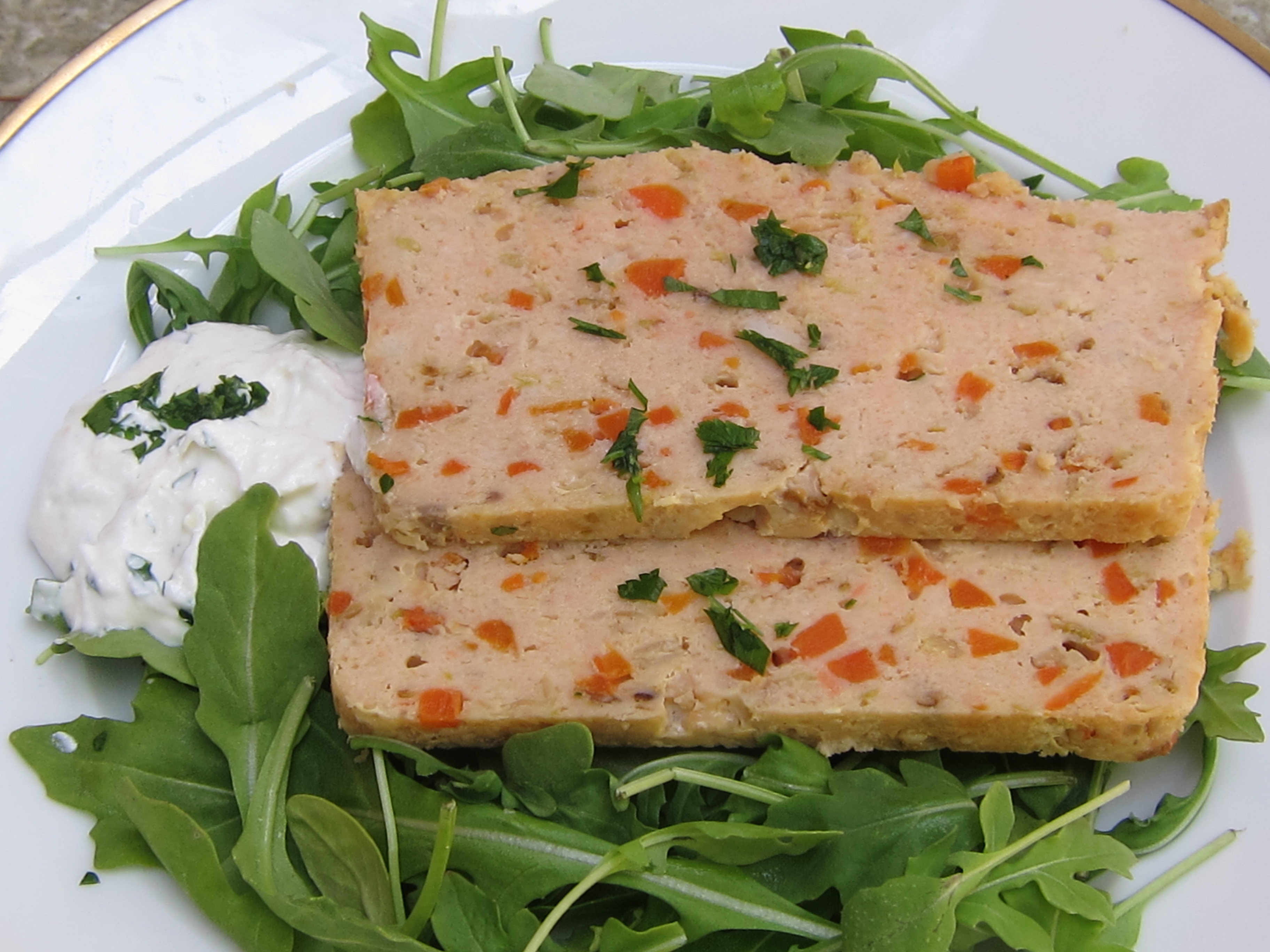 - Remove the loaf from the pan, place on a platter, and serve garnished with lemon slices and parsley, accompanied by the horseradish-beet cream.