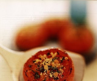 3. Combine the topping ingredients and taste for seasoning. After 1 1/2 hours, sprinkle the topping evenly over the tomatoes. Drizzle the olive oil on top, along with any reduced juices. Roast another 20-30 minutes or until the tomatoes are crusty golden brown. Serve immediately.